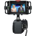 he URSA Studio Viewfinder from Blackmagic Design is specifically built to provide studio viewfinder functionality to your URSA Mini camera. With a 7″ screen, manual control knobs, camera ID/tally light, and a tension adjustable articulating mount, the Studio Viewfinder seamlessly integrates into a studio style workflow for relaxed camera operation at sporting events, concerts, or in the studio. Three manual knobs next to the view screen provide control over brightness, contrast, and peaking without having to dive into the menu system.