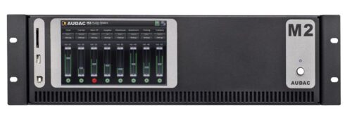 Note: The AUDAC M2DIS interactive 7″ touch-screen display kit shown on some promotional images of the M2 is an optional expansion kit not included in the standard M2.